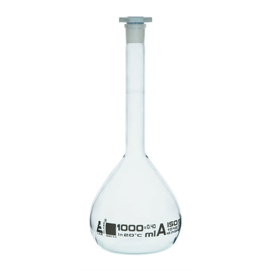 MATRAZ VOLUMÉTRICO (AFORADO) 1000ML, CLASE A, TAPÓN DE POLIPROPILENO EISCO