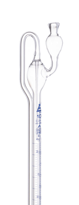 CH0242A Bureta de 10ml de vidrio borosilicato con llave de plástico PTFE clase A, graduación azul, reservorio de 1000ml, junta 29/32, cumple la norma DIN ISO 385, calibración TD para entregar una cantidad precisa, cuenta con certificado por lotes Eisco